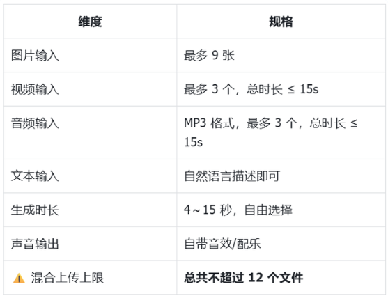 A:4~15 秒自由选择。如果是”延长视频”,生成时长 = 你要新增的时长。